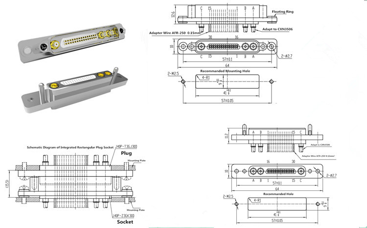 Our integrated connectors can be classified into RF integrated connectors and high & low frequency hybrid integrated connectors. Our integrated connectors are push-on screw-threaded coupling with metal outer conductor. Interfaces of our RF integrated connectors comply with GJB5246; Interfaces of our hybrid integrated connectors can be customized.